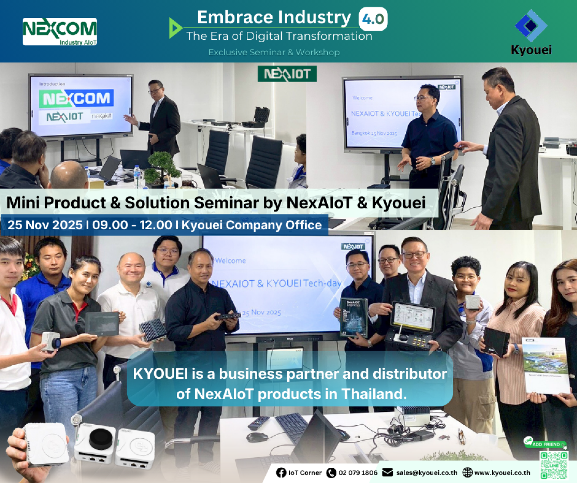 สัมผัสประสบการณ์ใหม่ฟรี ครั้งแรกกับการจัด Exclusive Seminar & Workshop สุดพิเศษ ไปกับผลิตภัณฑ์จากแบรนด์ NexAIoT ซึ่ง ทางเคียวเอะอิ ได้รับการแต่งตั้งให้เป็นตัวแทนจำหน่ายในประเทศไทยอย่างเป็นทางการ