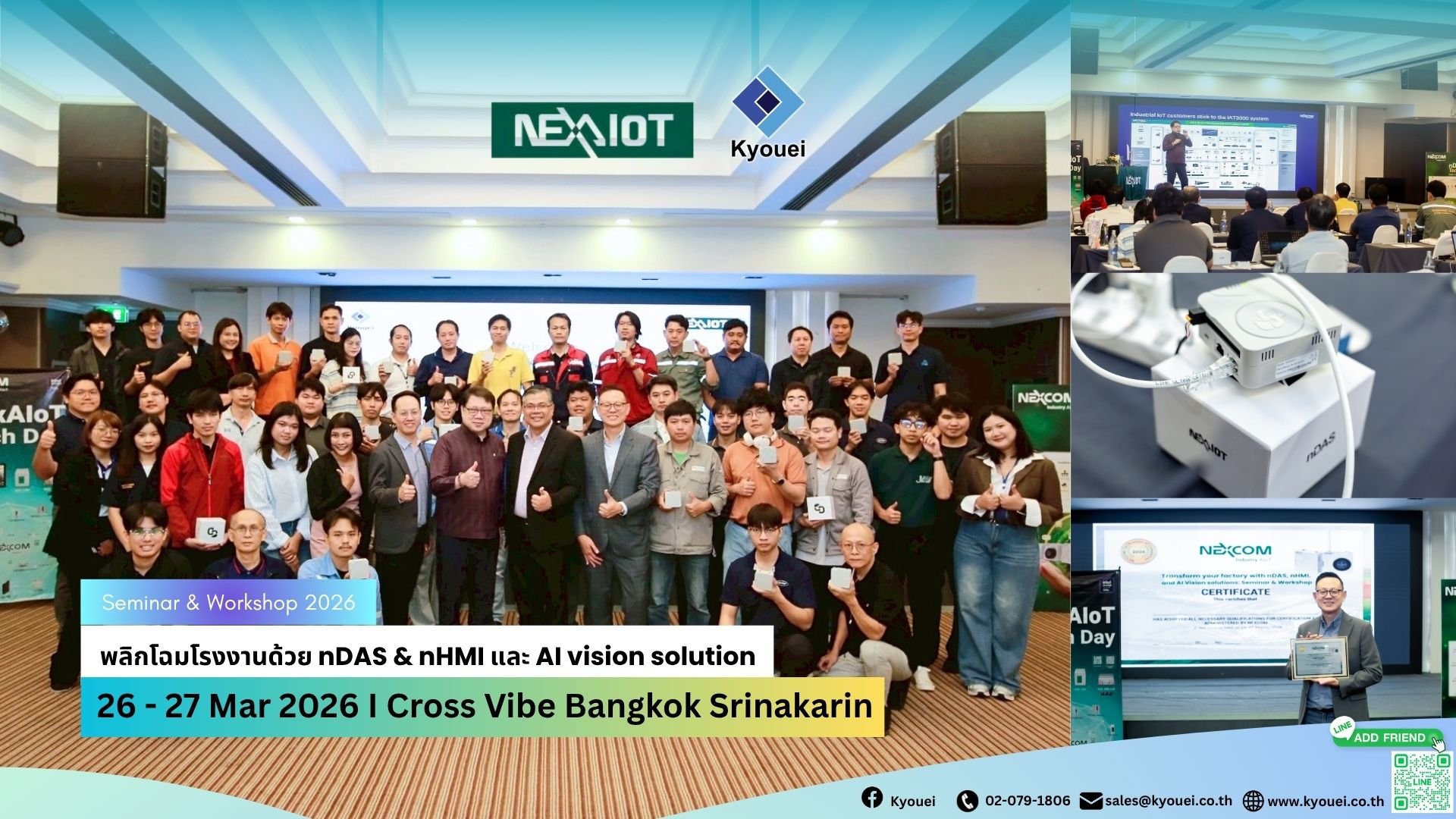บริษัท เคียวเอะอิ จำกัด และ NexAIoT (Nexcom) ได้ร่วมจัดงานสัมมนาและ Workshop หัวข้อ "พลิกโฉมโรงงานด้วย nDAS & nHMI และ AI Vision Solution เมื่อวันที่ 26 -27 มีนาคม 2569 ที่ผ่านมา